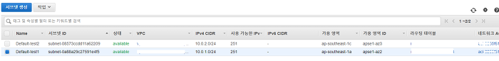 이렇게 하면 동일한 VPC망내에 서로 다른 존에 각각의 서브넷이 생성이 완료가 됩니다.