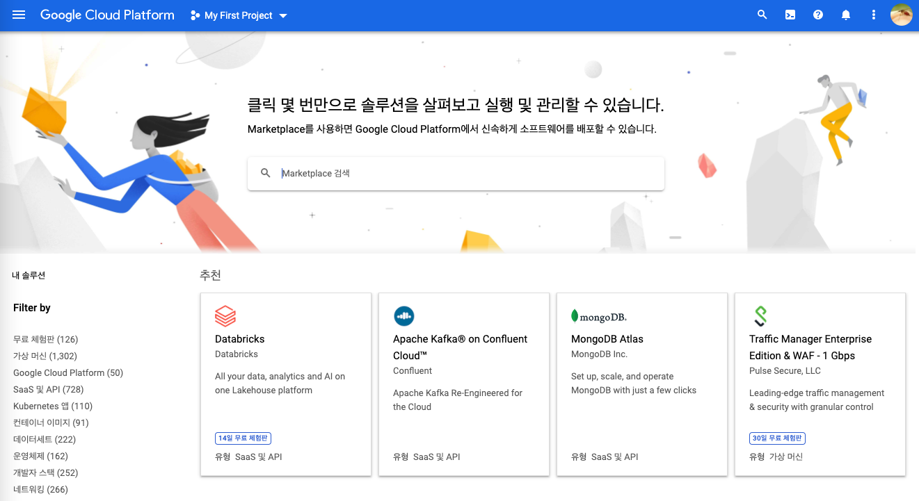 마켓플레이스 확인 -> 원하는 패키지가 설치된 인스턴스 확인 가능 -> 인스턴스 마다 사용 비용이 다름.