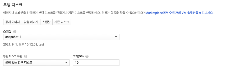 Compute Engine -> 이미지 -> 이미지 만들기 -> 소스 -> 스냅샷 선택 -> 소스 스냅샷 -> 미리 생성한 스냅샷 선택